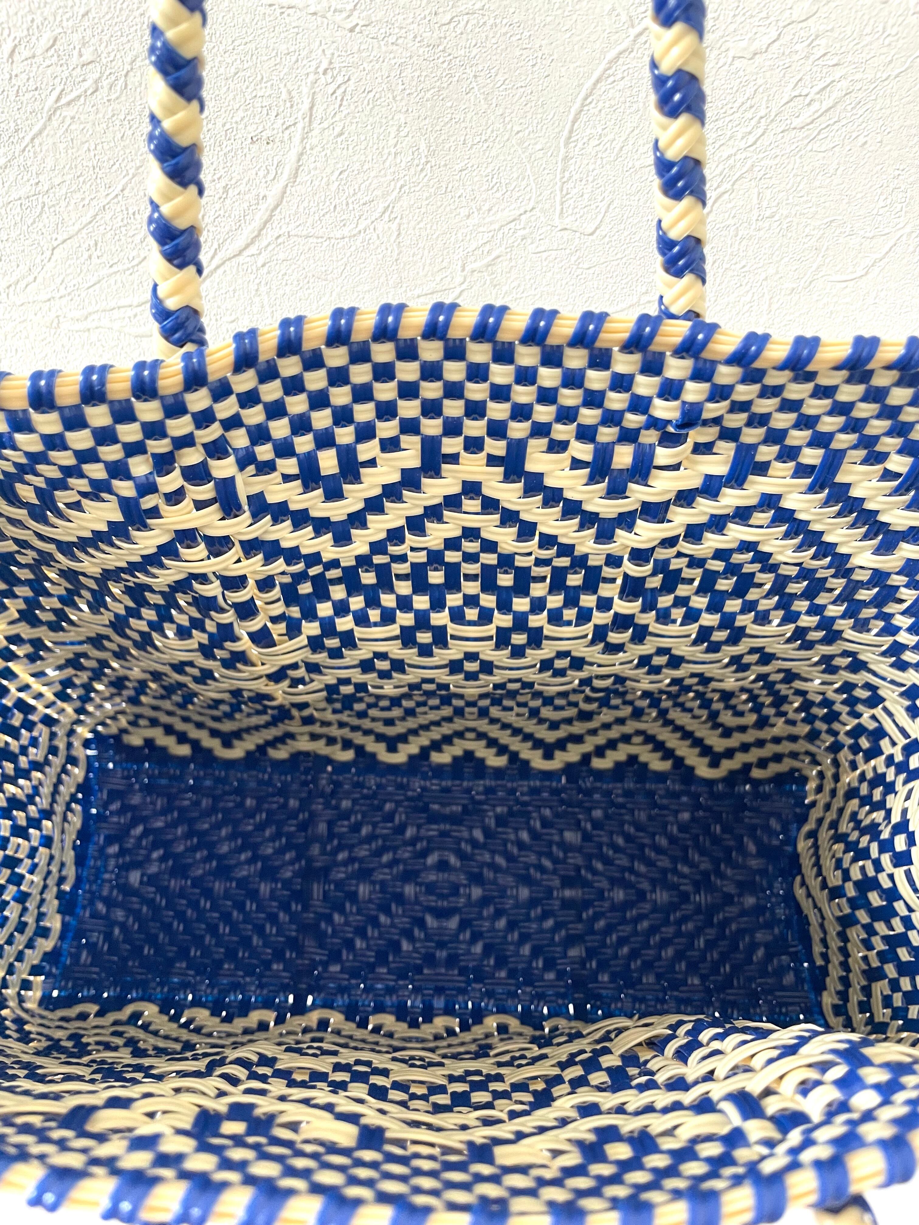 メキシコ、オアハカにて職人さんが一つ一つ丁寧に手作りしたメルカド(市場)バックです。リサイクルプラスチックを使用したサスティナブルなカゴバック、水洗いもできとても丈夫に作られています。