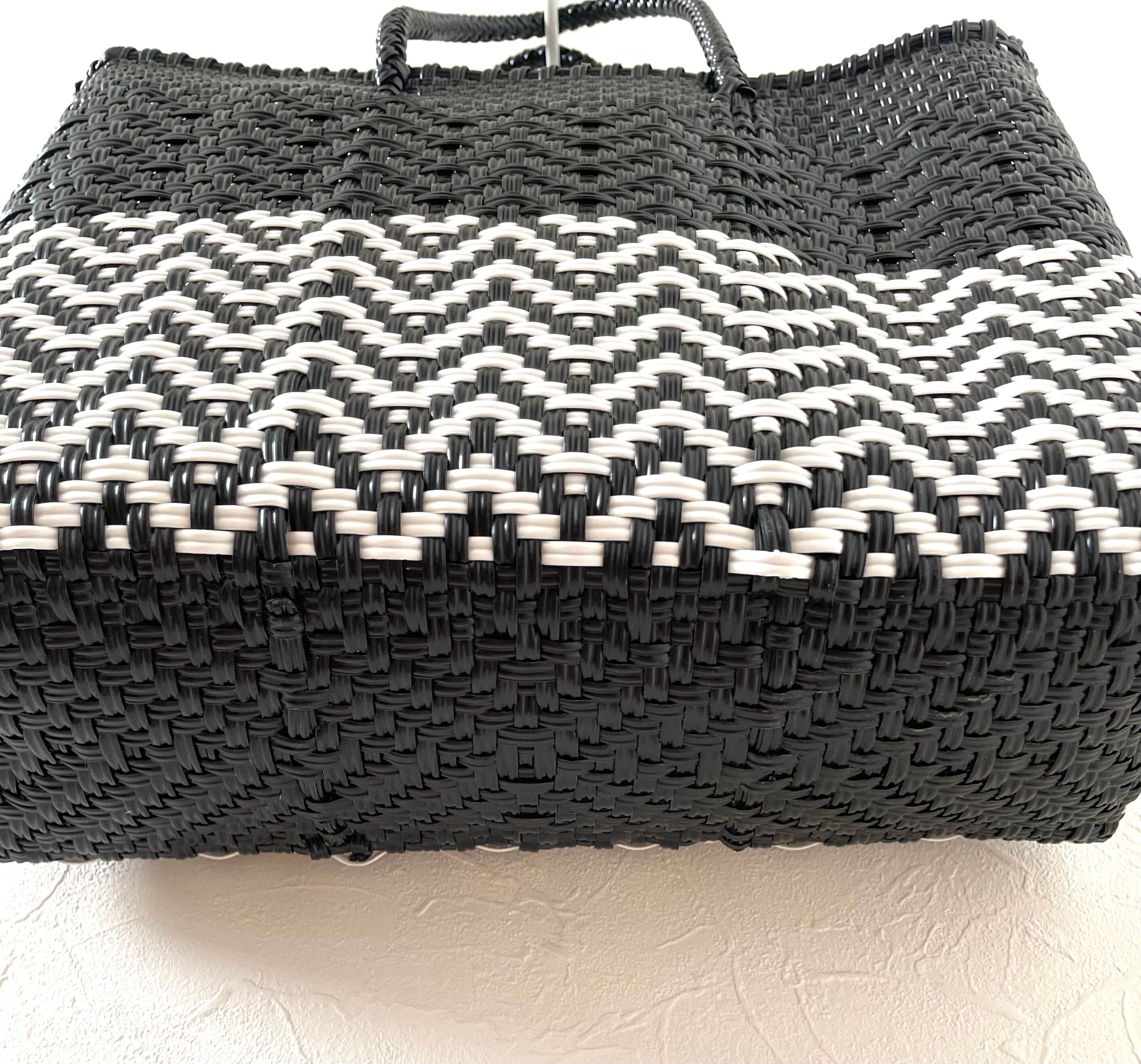 メキシコ製メルカドバッグXSサイズ/ブラック×ホワイトギザギザ