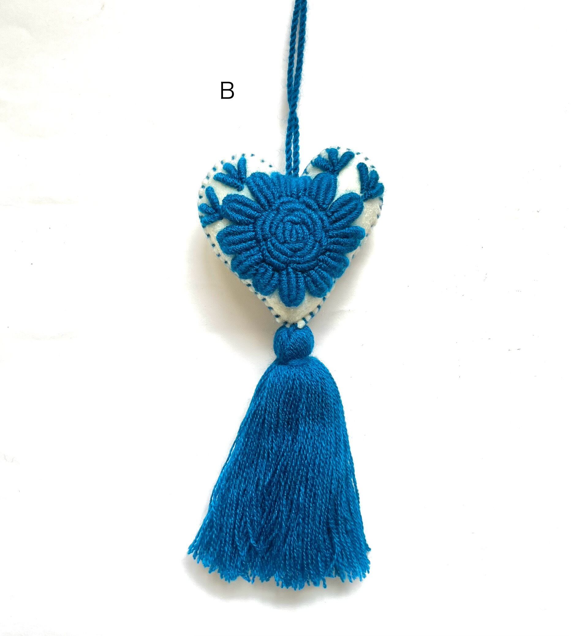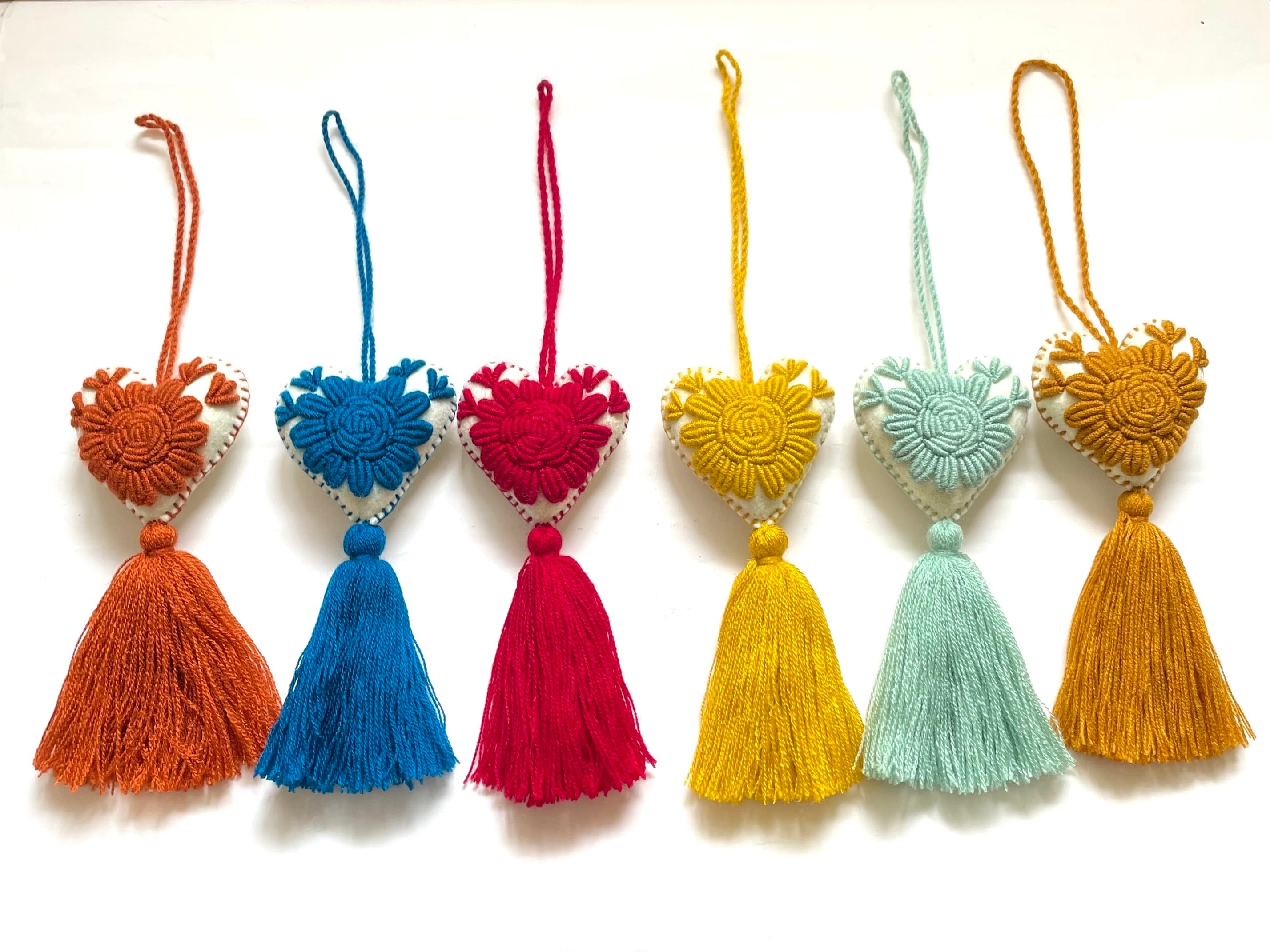 メキシコ製ポンポンチャームハート刺繍/A-F