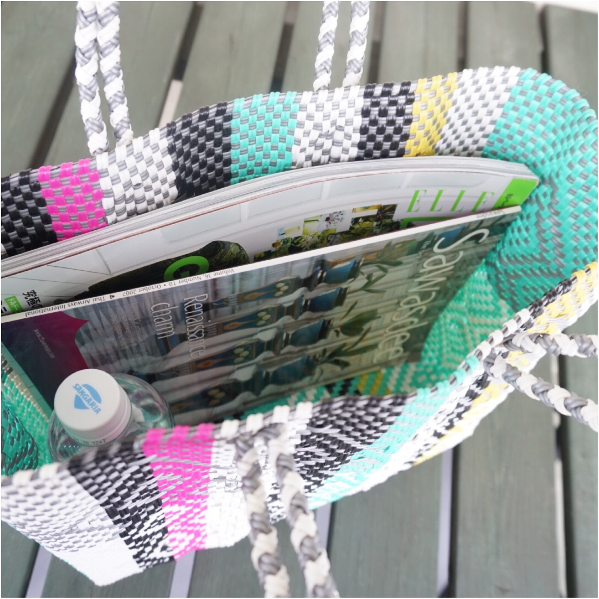 メキシコ、オアハカにて職人さんが一つ一つ丁寧に手作りしたメルカド(市場)バックです。リサイクルプラスチックを使用したサスティナブルなカゴバック、水洗いもできとても丈夫に作られています。