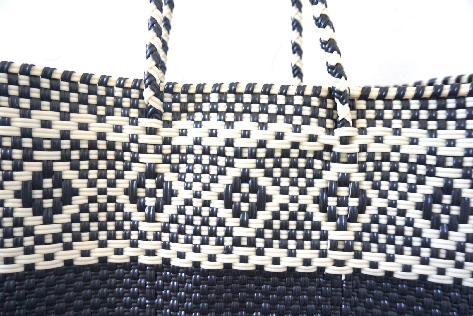 メキシコ、オアハカにて職人さんが一つ一つ丁寧に手作りしたメルカド(市場)バックです。リサイクルプラスチックを使用したサスティナブルなカゴバック、水洗いもできとても丈夫に作られています。