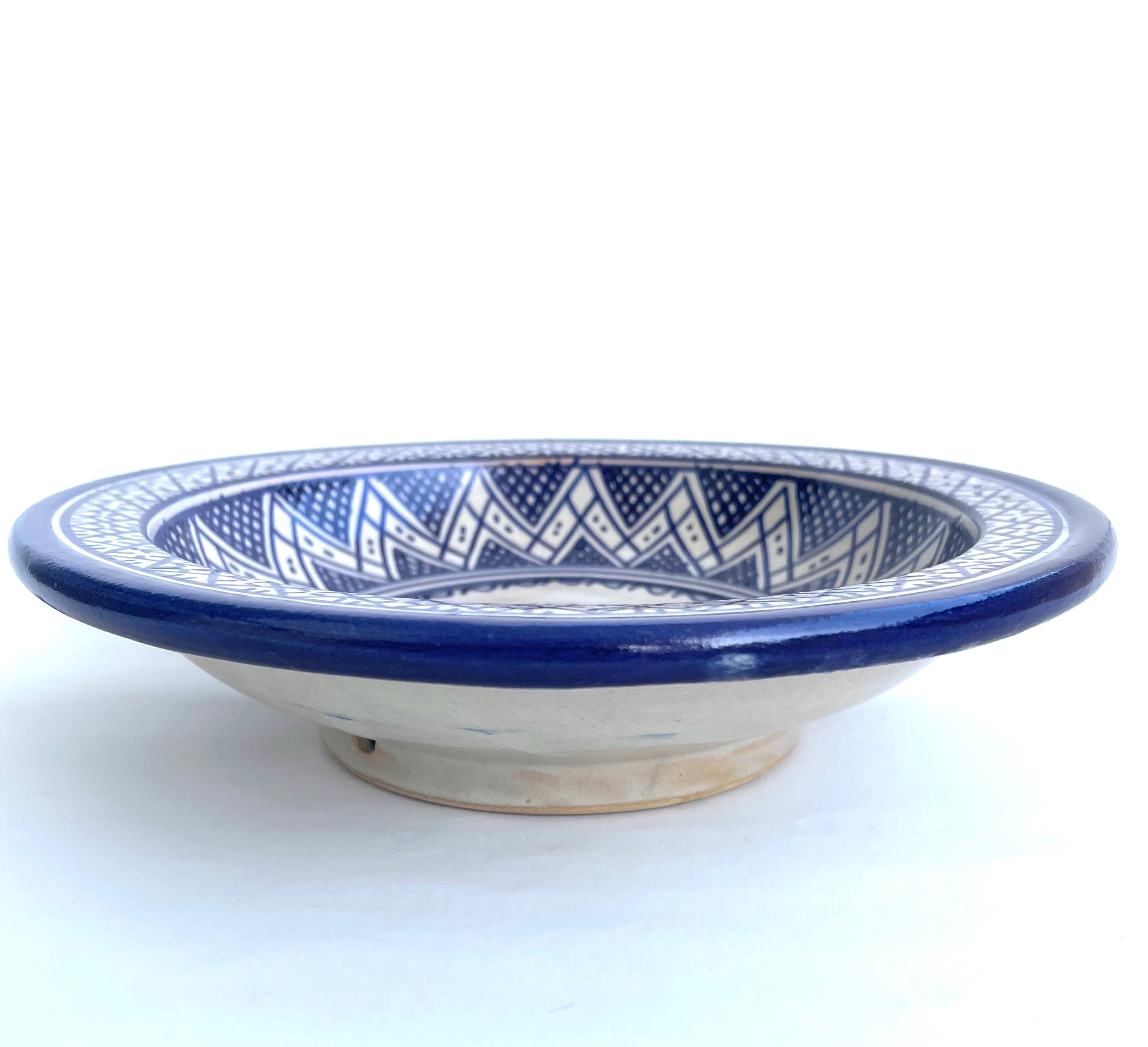 モロッコ3大陶器の町、迷宮都市としても有名なフェズの伝統工芸品です。フリーハンドで描かれた幾何学模様はとても精巧でアートとして装飾品としての役割も十分担っています。