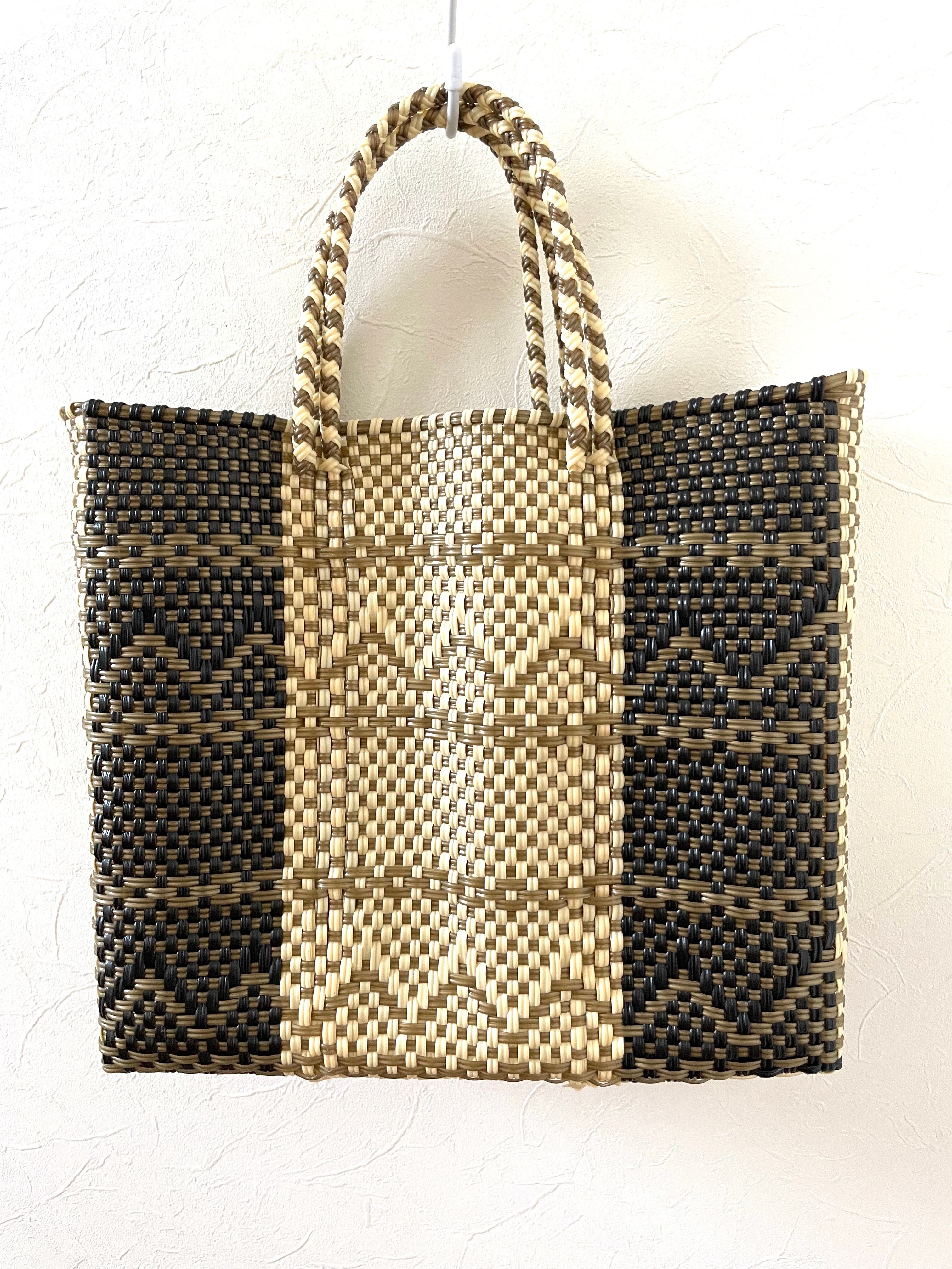 メキシコ、オアハカにて職人さんが一つ一つ丁寧に手作りしたメルカド(市場)バックです。リサイクルプラスチックを使用したサスティナブルなカゴバック、水洗いもできとても丈夫に作られています。